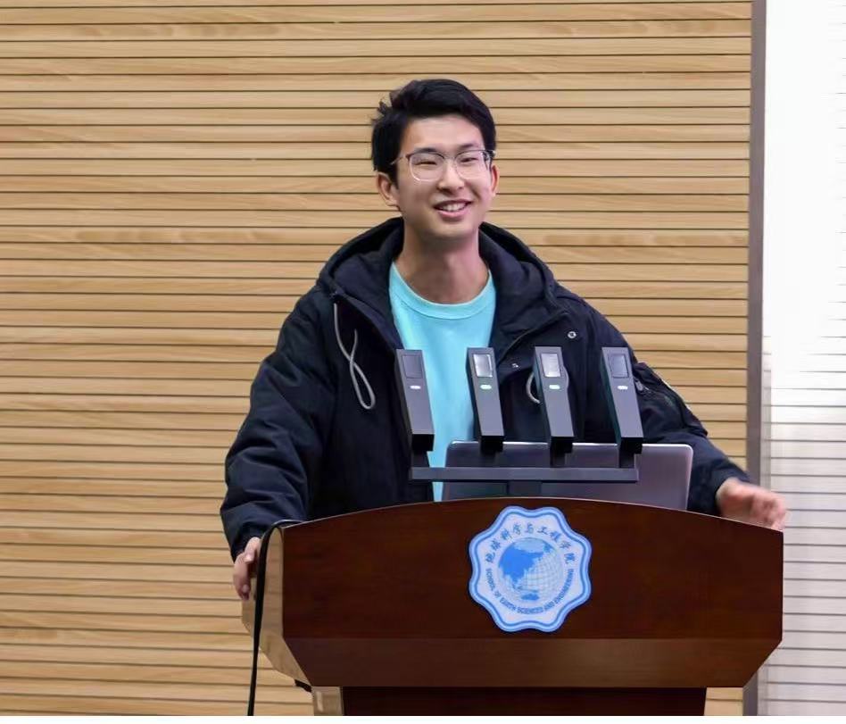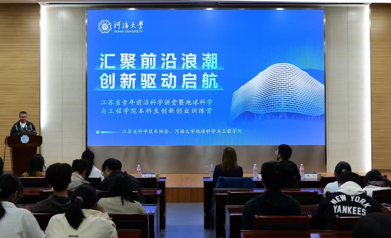 全体同学能以此次报告内容为契机,夯实创新基础,提升创新技能,探索专业前沿,合理做好规划,努力成为地学创新人才!并宣布学院将设立“测绘股份科创奖学金”,助力为进一步融合前沿知识与科研实践能力,提升创新综合素质与实操技能,营造良好创新创业氛围,10月24日,“汇聚前沿浪潮,创新驱动启航”地球科学与工程学院江苏省青年前沿科学讲堂暨本科生创新创业训练营于江宁校区笃学楼208开展。本次训练营由地学院党委副书记、副院长张玲彬主持,地学院院长刘瑾、中国国际大学生创新大赛金奖项目负责人、2025级博士生胡殿俊出席并做专题报告。全校师生200余人参与本次活动。