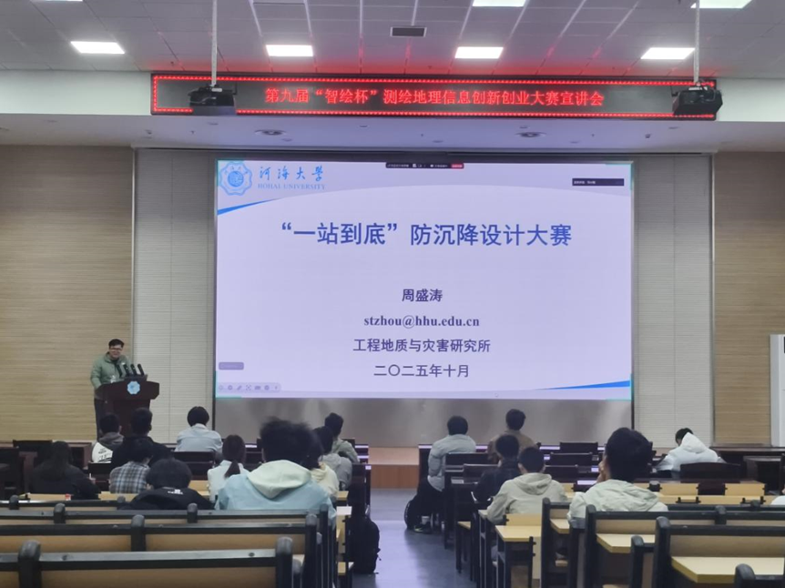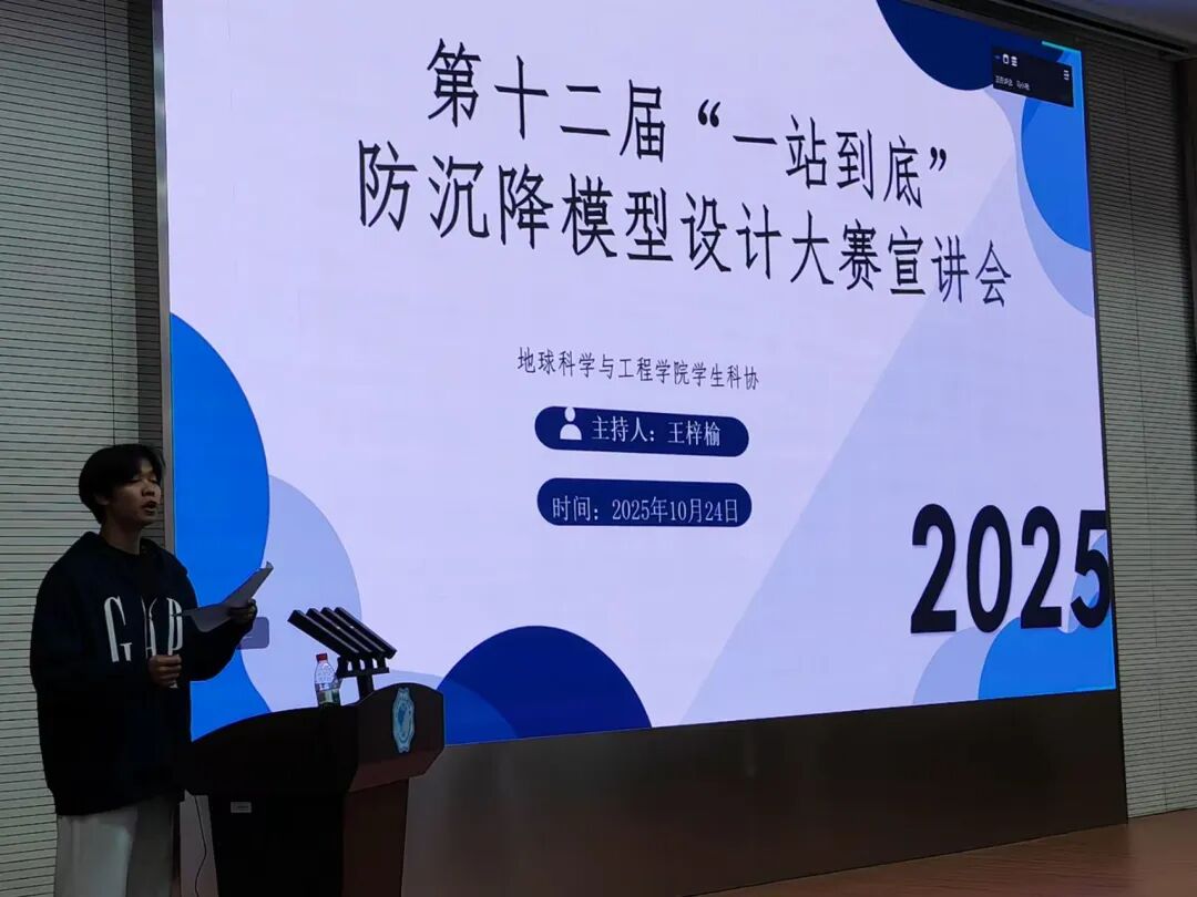 10月25日晚上,地学院科协在江宁校区笃学楼208与金坛校区二号楼A213举办第十二届“一站到底”防沉降模型设计大赛宣讲会。活动旨在帮助同学们深入理解赛制、激发创新思维,并搭建新老选手交流桥梁,为后续模型设计与制作预热。本次宣讲会邀请了工程地质与灾害研究所的周盛涛担任主讲老师,往届优秀获奖代表马小薇分享参赛经验。