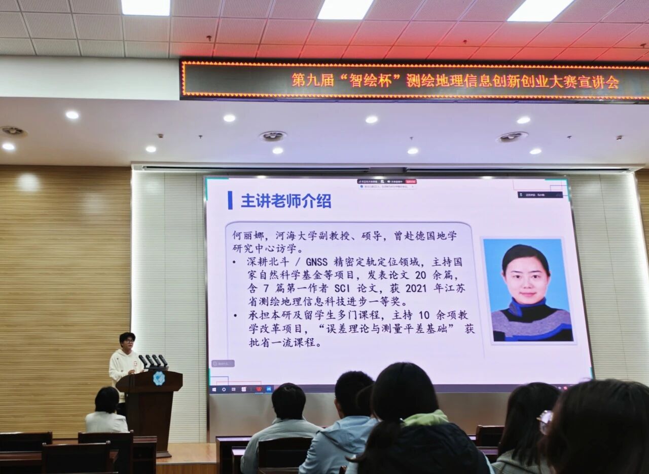 2025年10月24日,地球科学与工程学院学生科协在江宁校区笃学楼208教室与金坛校区A114教室,以“两地同步”的方式顺利开展了第九届“智绘杯”测绘地理信息创新创业大赛宣讲会活动。会议特别邀请了测绘科学与工程系何丽娜老师为同学们介绍大赛相关事宜,并邀请2023级本科生高皓天同学分享参赛经验。