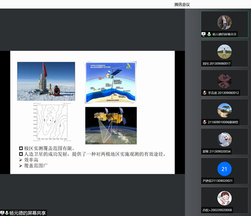 On the morning of November 6, 2021, at the invitation of Associate Professor Xu Jia , Associate Professor Yang Yuande delivered an online academic report titled Glacier/Ice Sheet Monitoring Based on Satellite Geodesy. This report was presided over by Associate Professor Xu Jia, and more than 200 teachers and students from our school participated in the online academic report.