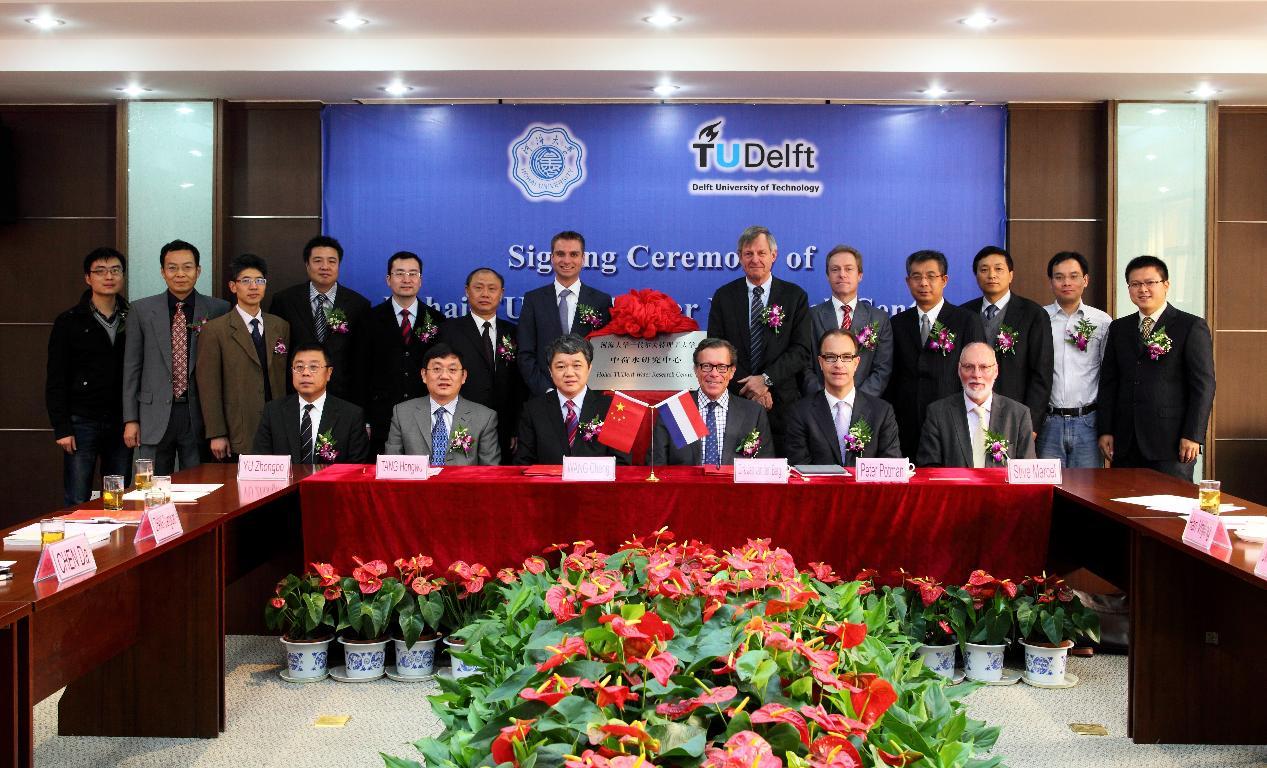 On 19th November, 2012, President Cheng Wang and President Dirk Jan van den Berg signed Collaboration Agreement, Vice president Tang hosted the signing ceremony. Professor Marcel Stive, Member of Royal Dutch Institution of Engineers, Professor Han Vrijling and Professor Zhengbing Wang from TUDelft; Mr. Peter Potman, Consul General of the Dutch Consulate General in Shanghai; Mr. Dirk Jan Boudeling, Officer for Science & Technology of the Dutch Consulate General in Shanghai; Mr. Roeland Schuurman, Chief Representative of Netherlands Business Support Office – Nanjing and Professors from Hohai University attended the ceremony.