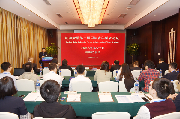 From October 16th to 18th ,Hohai University held the second Forum on International Young Scholars. More than 80 outstanding young talents from Stanford University, University of Toronto, National University of Singapore, University of Kyoto and other universities from all over the world gathered in Hohai university for friendship and common plans for the future. Hongwu Tang, Secretary of the School Party Committee and Hui XU, President of Hohai university attended the opening ceremony and delivered welcome speech. Junjie Li, the Executive Vice President of the university, Bing Zhang, Chief Accountant , Xin Meng, Deputy Party Secretary and Secretary of Committee for Discipline Inspection, Jinhai Zheng, Vice President of the university, Binglong Li, Deputy Director of Talent Essence of JiangSu Provincial Party Committee Organization Department, Wei Liu, Director of Talent Development Office in Jiangsu Provincial Department of Human Resources and Social Security and Xinyu guo, Deputy Director of the Department of Education of the Jiangsu Provincial Department of Education, attended the main forum. Executive Vice President Feng Xu presided over the forum.