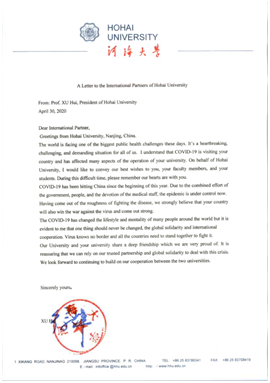 While fighting against the epidemic, Hohai University will continue to maintain cooperative relations with its global partners and work hand in hand to unswervingly promote the globalization process of higher education.