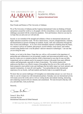 Dr. Teresa E.Wise, Vice President of the University of Alabama, who visited our school many times, praised highly the efforts made by international partners such as Hohai University in the face of the epidemic, which has effectively prevented the spread of the epidemic. She said that through this public health emergency, the importance and urgency of international cooperation are increasingly reflected. The individual country cannot develop very well if the whole world is affected by the epidemic. Only by sharing experience and coping with it together can we win the battle of epidemic prevention and control.