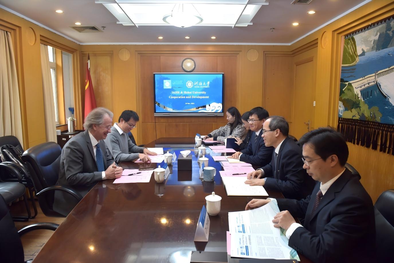 Representatives from the IAHR Secretariat Beijing Office and HHU's relevant functional departments participated in the meeting.
