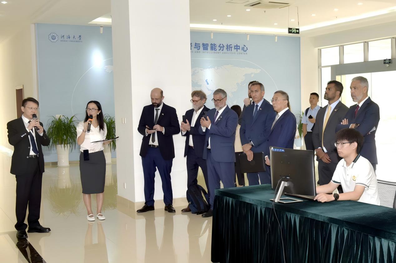 During the visit, the delegation visited the Water Engineering Experimental Research Base at Niushoushan Science and Technology Park of Hohai University. They observed major scientific research achievements contributing to the national water network construction and the maritime power strategy, including the global water disaster simulation and early warning system, smart water dispatch technology, and major engineering cases.