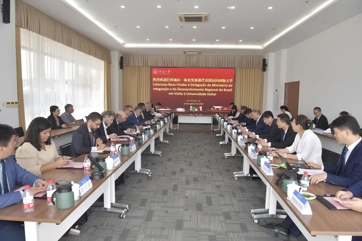 On August 13, Waldez Góes, Minister of Integration and Regional Development of Brazil, led a delegation to Hohai University for an in-depth exchange on cooperation in fields such as hydraulic engineering, soil remediation, and disaster prevention. Yang Guishan, Party Secretary of Hohai University, met with the delegation.