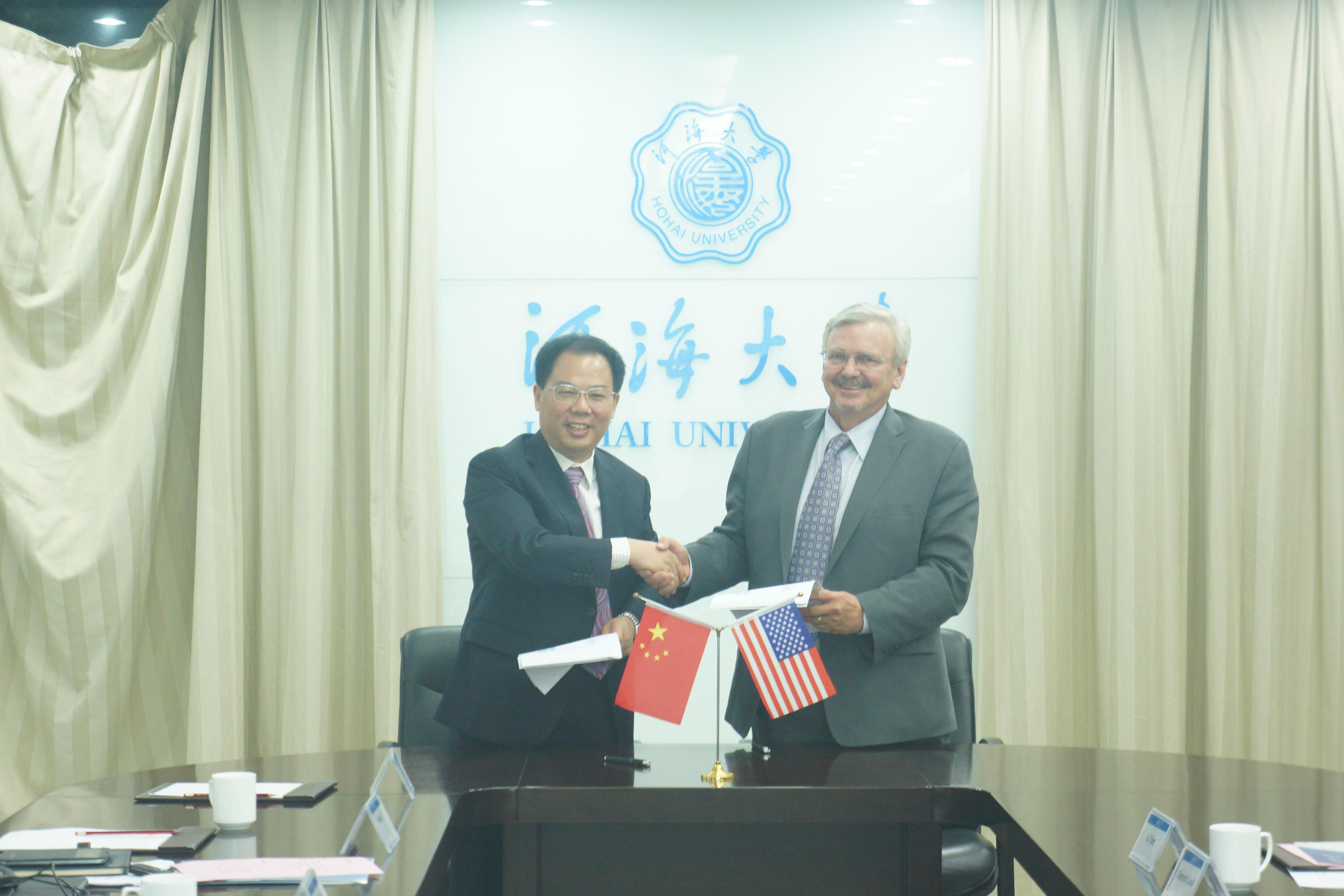 A delegation led by Professor Steve Wells, President of Desert Research Institute(DRI), USA, visited Hohai on August 13, 2014. The delegation includes Dr. Kumud Acharya, Research Professor of Division of Hydrologic Sciences,DRI, and Mr. Kenneth Ladd, Nevada Centre of Excellence.