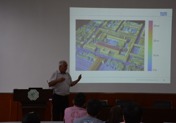 讨论互动环节,Stilla教授回答了师生的提问,就被遮挡建筑物的变化通过何种方法才能监测以及灾难(如火灾)导致建筑物变化怎么监测等问题进行了细致耐心的解答,UweStilla教授的报告使同学们受益匪浅。