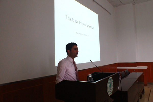 Dr.-Ing.Mohammad J.Tourian博士详细介绍了如何运用卫星测高技术监测内陆地区水储量变化及运用卡尔曼滤波方法估算河流径流量。除了卫星测高技术,Dr.-Ing.Mohammad J.Tourian博士还重点阐释了卫星重力手段监测陆地水储量变化的重力卫星计划,并就如何利用重力卫星监测结果更加深入理解陆地水循环系统与各位师生进行了交流。最后Dr.-Ing.Mohammad J.Tourian博士表示在后续的研究工作中将重点解决重力卫星时空分辨率不足、GNSS-R得到的反射信号不强等问题。报告的结尾,我院钱卫教授、瓦格纳副教授、蒋弥老师及我院博士、硕士研究生就如何获取星载传感器感测数据、SAR卫星重访方法、地下水量估计等问题与Dr.-Ing.Mohammad J. Tourian博士进行了深入探讨。Dr.-Ing.Mohammad J.Tourian博士一直从事卫星测高、GRACE、SAR、InSAR、GNSS等领域的研究,并致力于将这些遥感及卫星大地测量手段应用到水文学、冰川学、海洋学中。近年来他承担了多项德国国家科学基金项目,并在WaterResources Research, Remote Sensing of Environment, Surveys inGeophysics, Journal of Hydrology, Journal Geophysical Research (JGR:SolidEarth)等众多顶级期刊发表论文20余篇。他还是欧洲地球物理学会会员,曾获得美国地球物理学会2013优秀学术论文奖,同时是2017德意志学术交流中心奖学金获得者并赴美国加州大学欧文分校访问交流。
