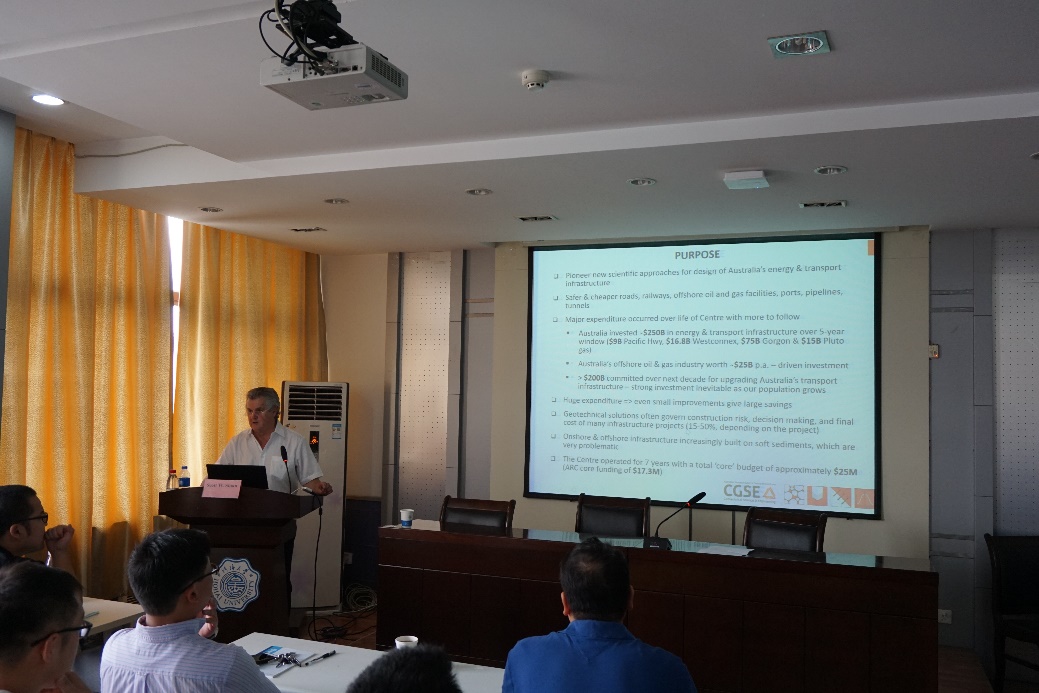 9月7日上午,澳大利亚纽卡斯尔大学荣誉教授Scott W. Sloan教授来我院访问交流并作学术报告。报告会由院长高玉峰教授主持,Sloan教授应邀作了题为“澳大利亚岩土科学与工程杰出研究中心(CGSE)的研究进展”的报告,学院老师及学生积极参与了此次讲座。本次讲座中,Sloan教授详细介绍了澳大利亚岩土科学与工程杰出研究中心(CGSE)的基本情况,并从软土特性与变形预测、环境岩土工程、基础破坏理论、边坡滚石机理与防护等几个方面,展示了澳大利亚近年来在岩土工程领域取得的丰硕成果。Sloan教授还与我院师生进行了学术讨论,氛围热烈。