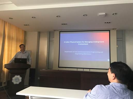 受土木与交通学院院长高玉峰教授的邀请,111计划“堤坝工程安全与减灾学科创新引智基地”(B13024)海外专家、美国戴顿大学Robert Liang教授于2019年5月29日至31日访问我院,进行学术交流和3+2联合培养项目交流。2018年5月30日上午应邀做了题目为“A Cyber-Physical System for Managing Underground Space”的学术报告;报告会由高玉峰院长主持,学院教师陈育民教授、孔纲强教授及研究生共30多人参加了报告会。报告会以生动形象的方式将AI技术和岩土工程技术结合起来,介绍了岩土工程领域中机器学习、人工智能等方面运用知识,受到同学们的热烈欢迎。Robert Liang教授的再次到访交流,为我院深化国际学术合作交流,以及提升我院相关学科国际影响力具有重要的作用。