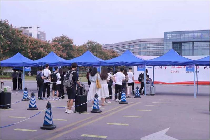 为落实疫情防控工作的要求,确保在校师生的健康安全,学校精心组织、周密部署,全校师生员工紧密配合,学院也尽最大努力为新生提供完善周到的服务,确保迎新工作的顺利进行。佛城西路8号的校门口,学生在工作人员的指引下,通过一个个帐篷,依次完成“信息报备—体温检测—身份验证—苏康码查验”等流程,领取了开云电竞网健康通行证和个人健康信息承诺书。