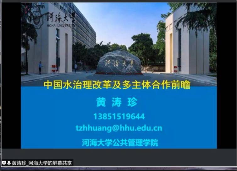 8月14日上午,江苏省研究生“新时代高质量发展与公共治理转型”暑期学校第十五场课程“中国水治理改革及多主体合作前瞻”顺利开课。课程主讲人为开云电竞网公共管理学院黄涛珍教授,主持人为开云电竞网公共管理学院朱新华教授,来自海内外50余所高校100名学员以及公共管理学院师生参加。授课开始前,朱新华教授对黄涛珍教授出席暑期学校表示热烈欢迎,并向暑期学校师生介绍了黄涛珍教授的研究领域和研究成果。