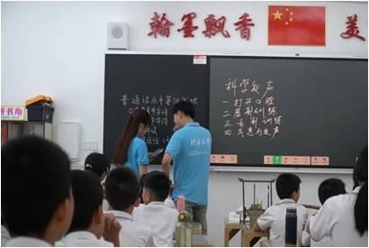 “四海同音——羽翼语言工作室”推普助力乡村振兴实践团前往安徽省宁国市云梯畲族乡和广东省汕头市陇田镇两地进行暑期社会实践活动。在云梯畲族乡和汕头陇田镇两地,实践团深入到群众一线,通过问卷、访谈等形式,对不同年龄、不同职业和不同特性的群众展开普通话使用情况的调研。实践团在陇田镇浩溪学校对学生进行了普通话水平等级测试,了解当地青少年普通话学习情况,进行点对点的纠正和记录,给当地青少年的普通话学习提出针对性建议。