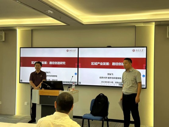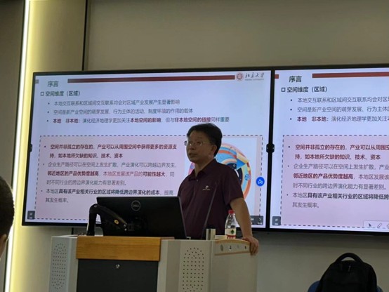 首先,朱新华教授对贺灿飞教授表达了欢迎,并介绍了贺灿飞教授的基本情况。随后贺老师围绕区域新产业路径创造的过程、机制和研究前沿开展了本次讲座。