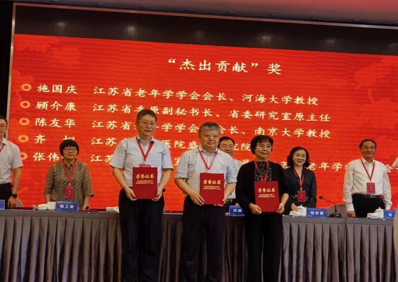 上午举行了“老年学研究与培训基地授牌仪式”及“第六届江苏省老年学学会奖”颁奖仪式。我院多位教师获奖,施国庆教授荣获“杰出贡献奖”;韩振燕、张鑫教授获得“先进工作者”奖;王欢副教授、施旖旎副教授,王锴博士、李梦凡博士荣获“第三届青年学者奖”;孙中艮教授、陈际华教授、韩振燕教授分别担任主任或副主任委员的老年学研究基地委员会、专家委员会、老年精神关爱专业委员会荣获“优秀专业委员会奖”;开云电竞网荣获“优秀研究与培训基地”奖。开云电竞网再次被评为“江苏省老年学研究与培训基地(2024-2028)”。