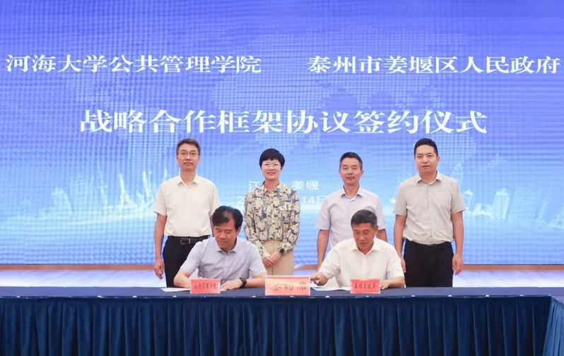 8月14日,我院吴宝海书记和朱新华院长带队赴泰州市姜堰区举行战略合作框架协议签约仪式,旨在进一步提高产业竞争力、科创驱动力和人才集聚力,实现“政府、学校、企业、学生”多方共赢。姜堰区领导孙靓靓、潘勇、杨少军、陆锋以及学院副院长陈涛、曹海林、陈莉等参加活动。