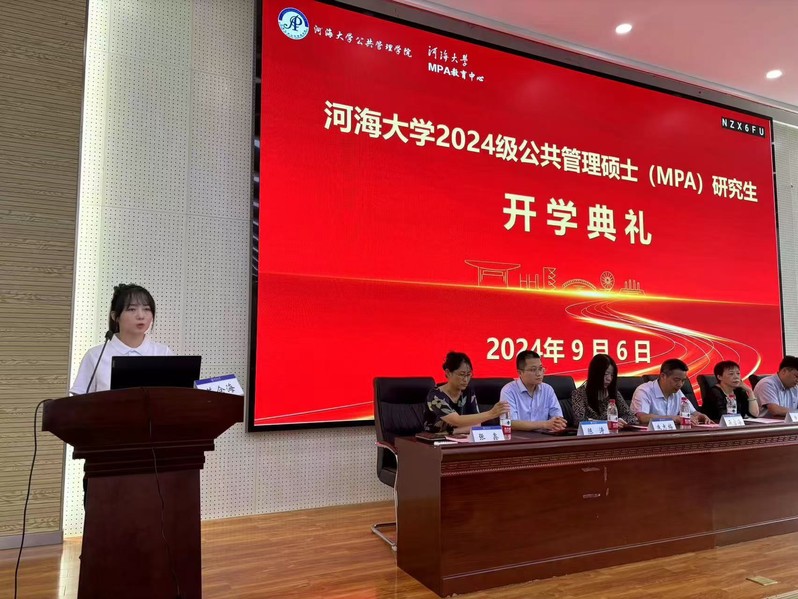 典礼在庄严的国歌声中拉开序幕。公共管理学院党委书记吴宝海致辞,他代表学院向2024级新同学致以热烈的欢迎和衷心的祝贺。吴宝海书记简要介绍了开云电竞网公共管理学院的基本情况、发展历史以及取得的成就,并对同学们提出几点希望与建议,希望同学们:不断学习新知,提升自身的公共管理素养和能力;积极参与实践,培养解决公共管理实际问题的能力;注重团队协作;勇于承担社会责任,用实际行动回馈社会,展现河海MPA人的风采。