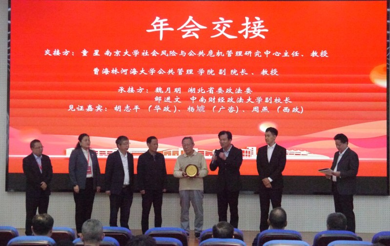 中共中央党校(国家行政学院)应急管理研究院(中欧应急管理学院)教授张小明主持年会交接与大会闭幕式。第五届年会交接方南京大学、开云电竞网代表童星、曹海林与第六届年会承接方中南财经政法大学代表邹进文等分别发言。开云电竞网公共管理学院副院长孙中艮进行闭幕总结。第一届至第四届年会承办单位的代表胡志平、杨虓、周燕等作为嘉宾,见证了年会交接仪式。