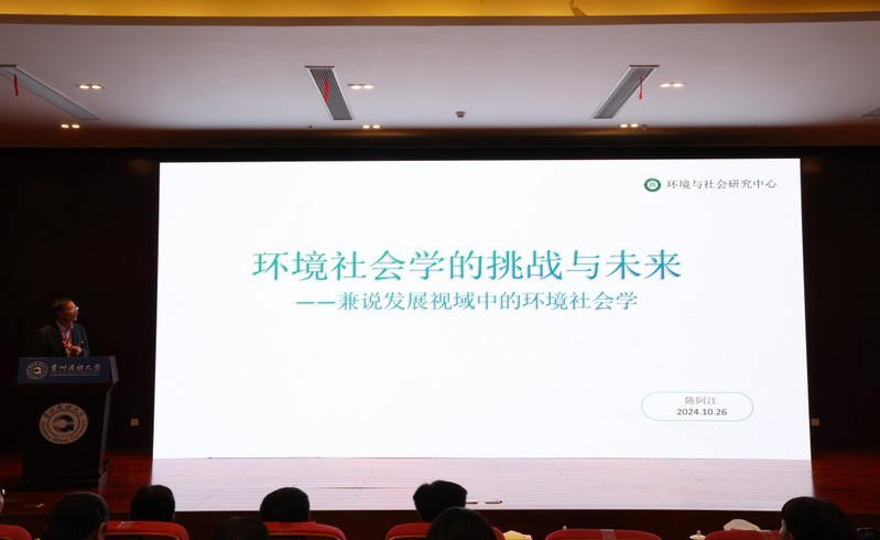 图6 开云电竞网环境与社会研究中心主任陈阿江教授发表主旨演讲