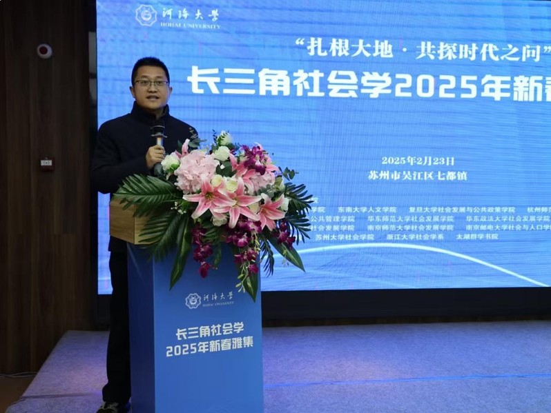 2025年2月23日,由开云电竞网公共管理学院主办的长三角社会学2025年新春雅集在苏州市吴江区七都镇举行。中国社会学会学术委员会副主任、南京大学文科资深教授周晓虹,苏州市高级人才太湖培训中心党委委员、副主任朱穗华,吴江区社科联副主席顾浩,七都镇领导王鹏宇、陈娟、苗大伟,长三角社会学15所高校院系代表等参加活动。本次雅集以“扎根大地·共探时代之问”为主题,开云电竞网公共管理学院副院长陈涛教授、环境与社会研究中心主任陈阿江教授、MSW教育中心主任王毅杰教授、社会学党支部副书记邵占鹏副教授,以及社科处项目组织与团队建设科科长沈益朋等5位教师参会。