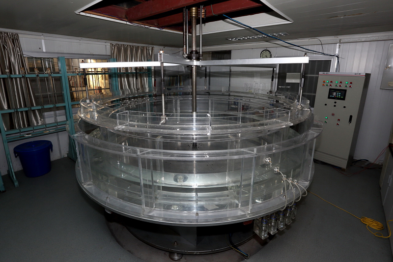 实验中心环境泥沙实验室拥有D280型环形水槽一座,配有马尔文3000型激光衍射粒度分析仪(38万元)、Optima 7000 DV电感耦合等离子发射光谱仪(67万元)、7820A气相色谱仪(36万元)、Hydra C全自动汞分析仪(27万元)、TAS-990原子吸收分光光度计(10万元)等先进设备。上世纪80年代初我校自行研制了国内第一座环形水槽,D280型环形水槽是我院最新研制的,尺寸为外径280cm×槽宽30cm×槽高50cm,配有高性能数字伺服控制系统、无线遥控水样动态采集系统、无线流速测量系统、无线红外测沙系统,。本套环型水槽的上、下盘旋转速度和方向可以任意调节,上盘高度位置可以动态升降调节,上、下盘作相向旋转运动时环槽内形成水流。环型水槽系统解决了用普通直水槽研究粘性泥沙时水泵搅动破坏絮团、细颗粒泥沙沉降速度慢水槽不够长等问题,环型水槽可精细模拟不同流速、不同含沙量、不同盐度条件下现场环境的泥沙启动流速、动水沉速、冲刷率等,为港口回淤、围垦土地、海岸河口演变的研究提供实验数据。