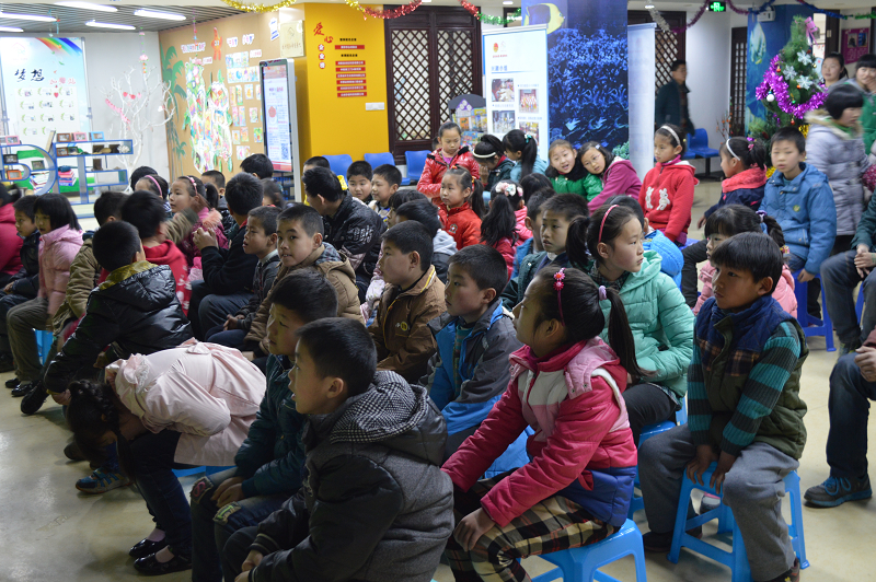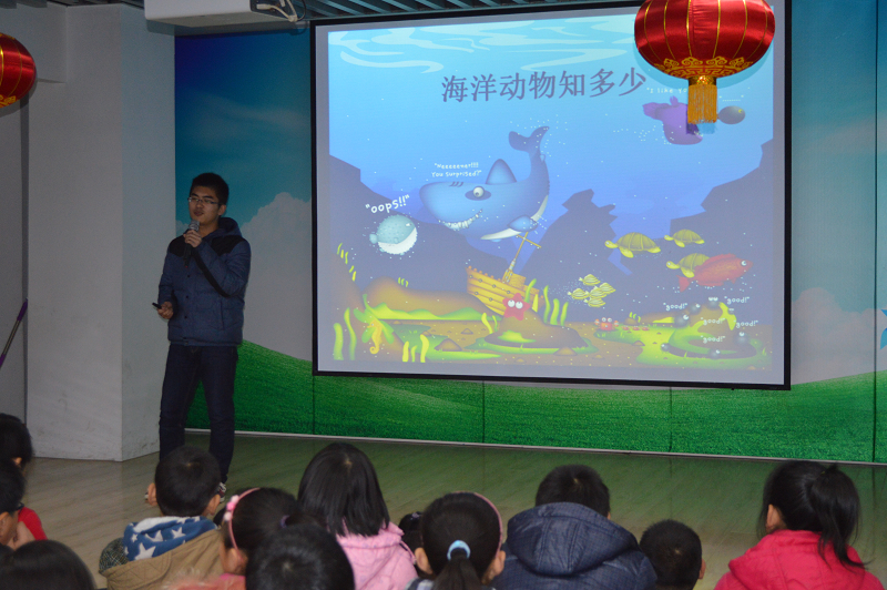 来吧的马老师亲切地接待了同学们,一番交流之后开始了同学们精心准备的海洋知识小讲座。来吧的所有孩子们都参加了这次课程,他们训练有素,活脱脱像一个个小战士,活力无限。演讲代表宗同学给小朋友讲海洋生物,内容丰富、图文并茂。或可爱、或庞大、或凶猛、或美丽的海洋动物吸引着小朋友们,声声惊呼,令人无限怜爱。“宗老师”讲课之余还不忘与小朋友们互动,小朋友们踊跃举手、争相发言。生动的讲座,再加上一段小视频,孩子们听得津津有味。