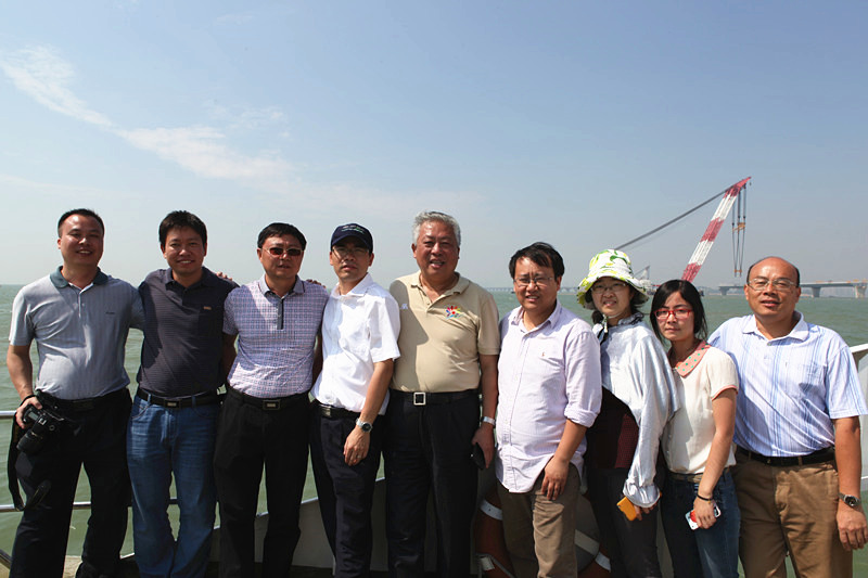 图3 实地考察港珠澳大桥 图4 科考结束课题组成员合影