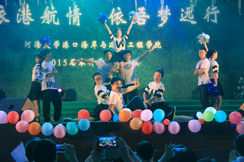 2015年6月24日晚18时30分,以“依依港航情,依吾梦远行”为主题的港口海岸与近海工程学院2015届毕业生晚会在严恺馆广场隆重举行,出席晚会的有学院的领导、老师,以及2015届毕业生和家长代表。