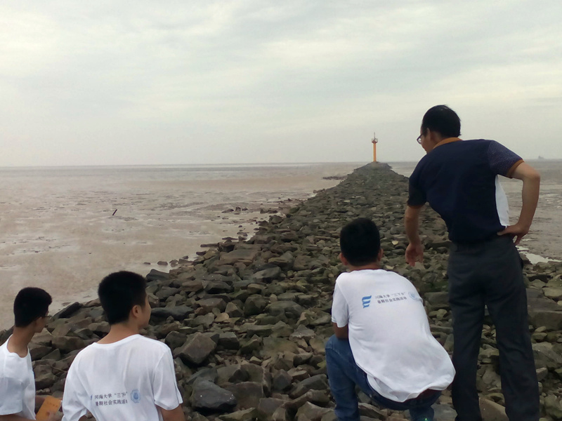 7月11日,在对射阳港有了初步了解的基础上,实践团来到射阳港进行实地考察,了解射阳港目前的建设情况和未来的建设规划,以及具体设施在其中的作用和运作方式,极大地丰富了队员们的专业知识,为今后的学习和研究打下了基础。当天下午,队员们还遇见了学院2000级的学长,学长在学习、工作、生活等方面给了队员们诸多宝贵的建议,同时也为母校百年华诞送上了祝福。