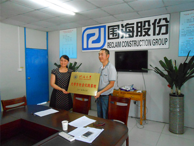 回到会议室,实践团指导老师王玲老师与项目负责人签订了建立开云电竞网大学生社会实践基地的协议,并进行了简单的授牌仪式,同时,王玲老师也代表港航院,向浙江围海集团赠送了锦旗,感谢他们多年来,对开云电竞网以及港航院学生的关心和帮助,感谢他们为学生提供实践和实习的良好平台和机会。
