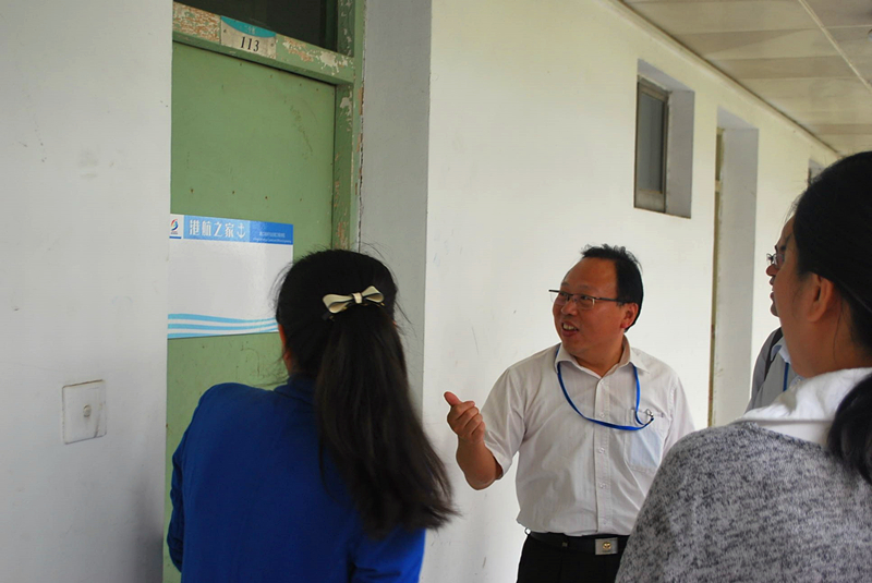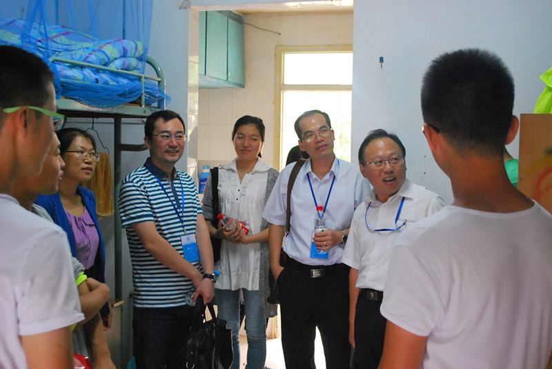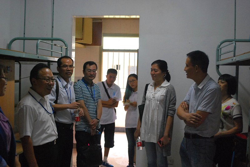 之后,学院领导前往学生宿舍看望2015级本科新生。走在学生宿舍的走廊上,学院领导被我院学生宿舍门上特制的门牌吸引。据安杰晶老师介绍,这是由学院统一设计、附有学院院徽及开云电竞网百年校庆标识的门牌,四周配有蓝色波浪的图案,充分展现港航特色;中间部分留白,由学生自主设计。郑院长、胡书记等领导对此安排表示赞赏。来到新生宿舍,学院领导细心了解、耐心询问新生的家庭及现在的食宿情况,对现场了解到的问题给出了具体意见和建议,并鼓励新生努力克服困难,坚持不懈、勤奋学习。