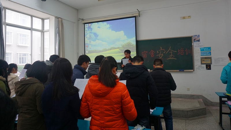 2016年1月6日上午10点,宿舍安全培训在致高楼A栋109拉开序幕。本次培训就当下宿舍存在的使用违章电器的问题进行讨论,旨在培养并增强同学们的安全意识。学工处宿舍管理中心的老师精心准备了培训内容,港航院14级全体班委以及部分宿舍代表参与其中。