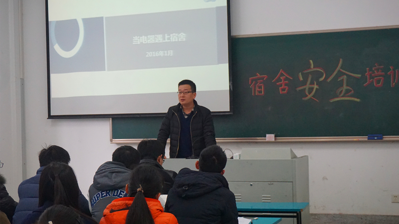 2016年1月6日上午10点,宿舍安全培训在致高楼A栋109拉开序幕。本次培训就当下宿舍存在的使用违章电器的问题进行讨论,旨在培养并增强同学们的安全意识。学工处宿舍管理中心的老师精心准备了培训内容,港航院14级全体班委以及部分宿舍代表参与其中。