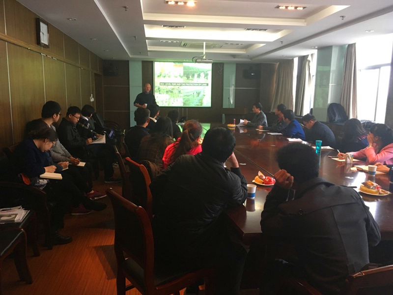 On the morning of April 6, Professor David M. Paterson from University of St Andrews visited College of Harbor, Coastal and Offshore Engineering and gave a seminar titled “The biology of coastal erosion”. The seminar was hosted by Vice Dean Zheng Gong. Started with a piece of Stromatolite containing rich information of microorganism, Professor Paterson explained the influence of biology on sediment dynamics, and introduced the measurement technology and research methods in this interdisciplinary area.