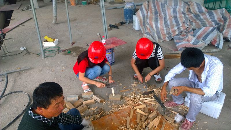 7月13日,在张李师兄的带领下,队员们参观了东堤、相关的船闸水闸,了解了船闸的基本运作。队员们还亲自加入到现场施工人员止水塞的制作中。经过了两天的实地参观、动手实践,队员们对海堤有了一定的了解,以往在书上令人费解的模型,现在鲜活地呈现在眼前,变得也没那么难以触及了。