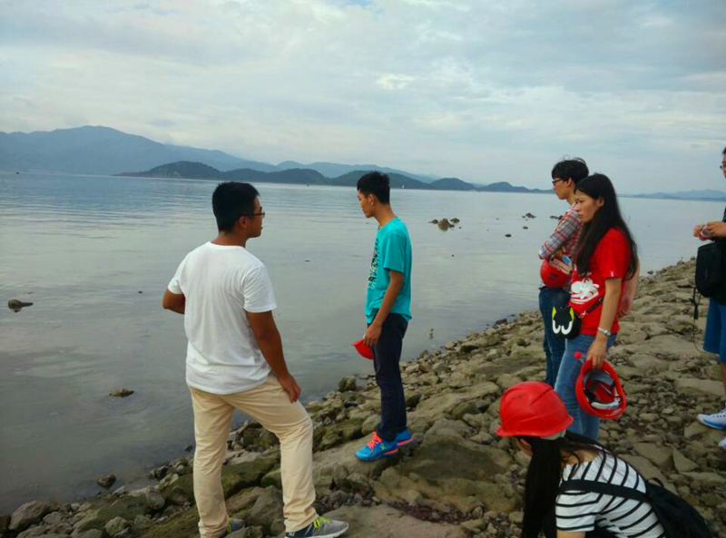 紧接着又参观了南堤,建设已经比西堤更为完善。南堤已经建好了下面一层防波堤,张李师兄为实践成员们讲解了防波堤的知识。师兄还讲解了西堤、南堤以及明天将要参观的东堤是为建设旅游景观而建造的缘由、用处。实践成员也向师兄提问了有关海堤规划布局等知识。