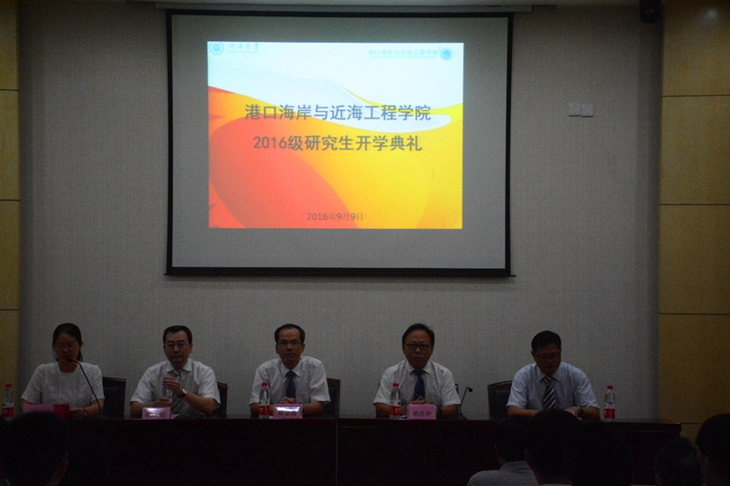 2016年9月9日,港口海岸与近海工程学院2016级研究生开学典礼在闻天馆113隆重举行,出席典礼的嘉宾有港航院党委书记胡忠华、院长郑金海教授、副院长陈达教授,副院长诸裕良教授,党委副书记姜海霞等。姜海霞副书记负责主持开学典礼。