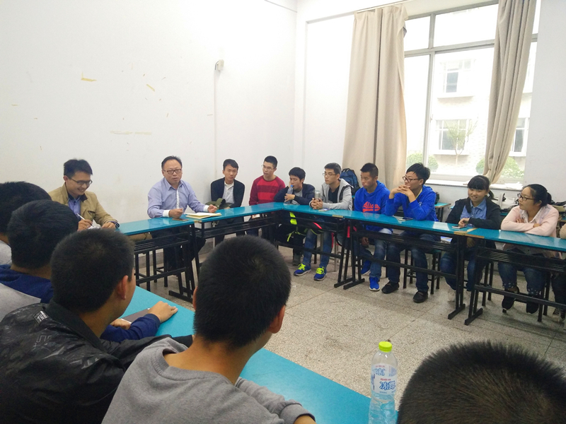 2016年10月12日,在致高楼A103教室,港航院党委胡忠华书记与16级港航一班同学在此第一次正式见面座谈,辅导员季超老师也参加了此次活动。