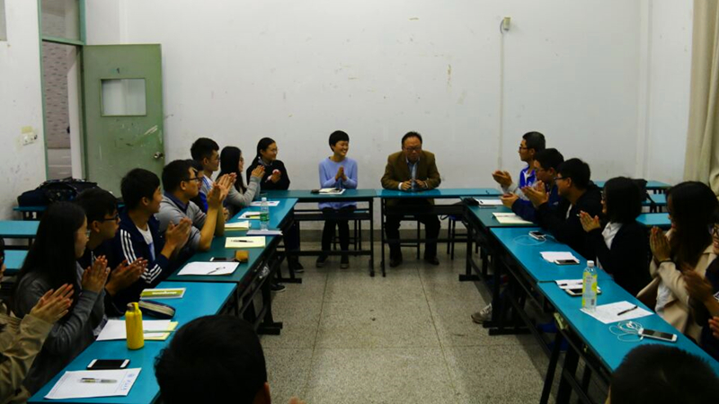 10月12日下午,在致高楼高A107教室,港航院党委胡忠华书记在院团委朱钰老师的陪同下与学生组织各部门负责人开展座谈。