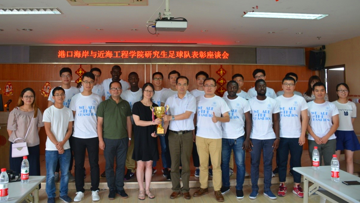 2017年6月2日,港口海岸与近海工程学院研究生足球队表彰座谈会在严恺馆702举行。会议由院党委姜海霞副书记主持,院长郑金海教授、院党委胡忠华书记、辅导员林凡老师以及全体足球队员、部分研会成员出席了本次表彰座谈会。