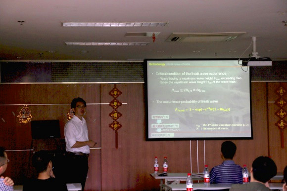 6月2日下午,董东璟副教授在严恺馆702会议室为我院师生做了题为“作业化畸形波概率预报研究”的学术报告。详细介绍了畸形波研究发展的历程和畸形波概率预报的最新技术。通过畸形波概率业务化预报实例阐明了针对畸形波问题开展业务化预报的可能性,为参会人员特别是相关研究方向的老师和学生开展科研工作带来了新颖的思路,激发了热烈的交流与探讨。会议由郑金海教授主持,20多位师生参加。