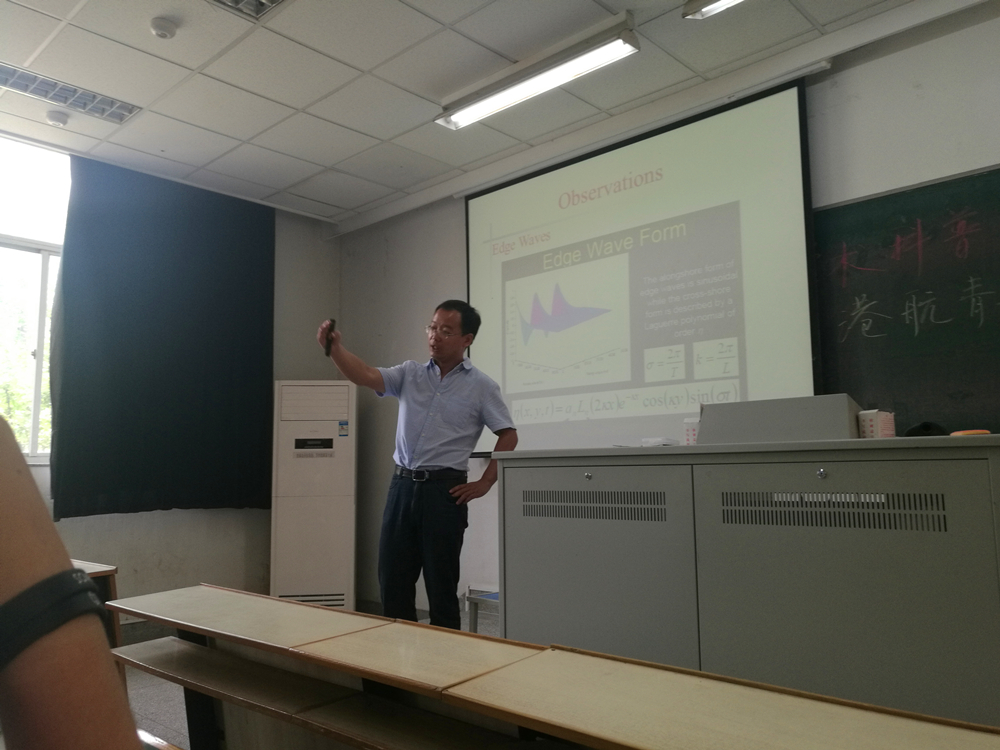 首先上台的为孔俊教授。孔教授教学经验丰富,他通过简练的语言、易懂的案例向同学们讲解海岸带地表水与地下水的相互作用、水沙输运的数值模拟、水环境影响评价等相关知识。随后,王岗副教授向同学们介绍港口波浪的知识。王教授向同学们展示了各类水波模型,结合生活案例展现出科学的奥妙,鼓励同学们积极探索。最后,两位老师耐心地解答了同学的疑问。