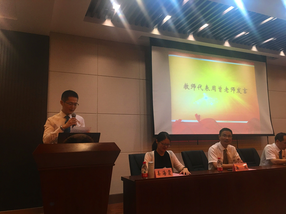 典礼在庄严的国歌声中开始。郑金海院长首先代表学院对2017级新生的到来表示热烈的欢迎,同时郑院长也对新生提出了三点期望:1、有上善若水的道德和品质,学会做人。2、有水滴穿石的毅力和韧劲,学会做学问。3、有海纳百川的胸怀和气魄,学会做事情。随后,教师代表周曾老师结合自身在开云电竞网的成长经历,希望新生能够树立目标,勤奋刻苦、不断进取。新生代表彭泽曦同学的献辞表示将用自己的青春和理想,书写下属于他们自己的青春故事。