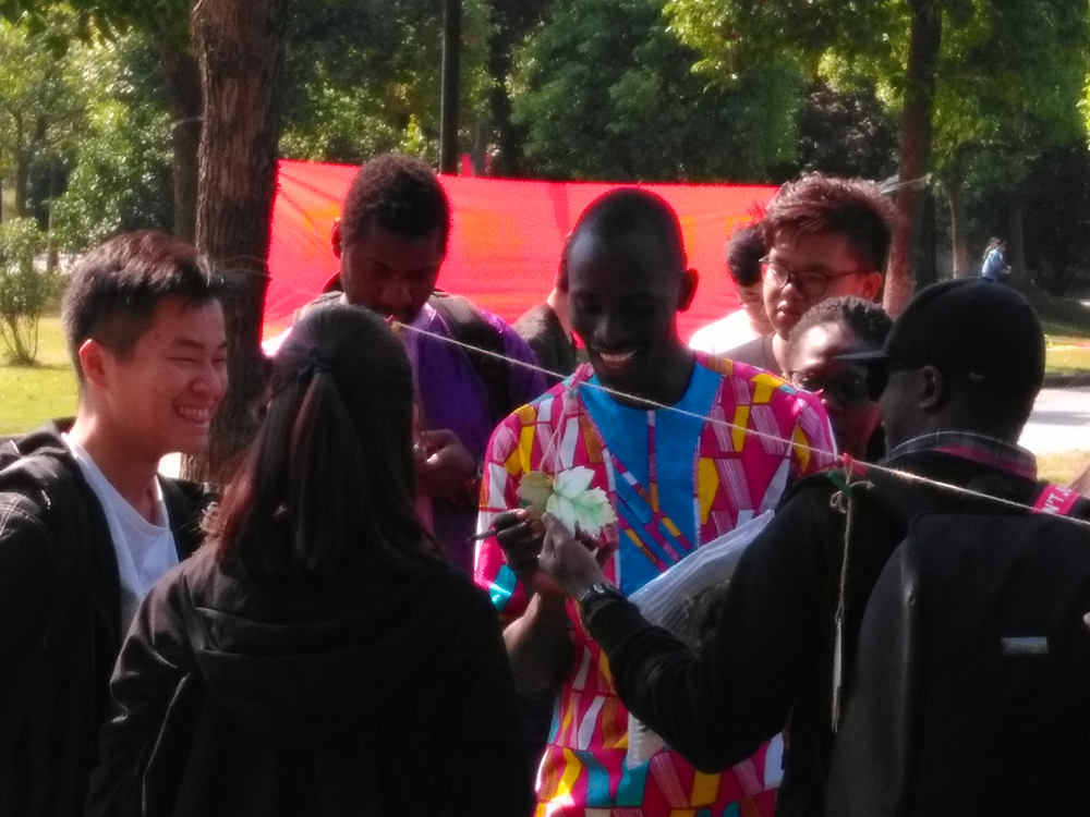 中午12点活动正式开始。猜字谜、“手忙脚乱”等活动精彩纷呈,不仅受到我院同学的热情支持,更吸引了很多留学生的参与。其中“手忙脚乱”,是指参加的同学需要站在规定区域内,只有按照组织者要求的×手×脚与地面接触且保持平衡超过三秒钟才算通过。这些比赛项目不仅需要智慧,更需要大家的团结和对伙伴的信任。一次次的障碍,一次次地突破,同学们最终取得胜利。此次活动在大家的欢声笑语中圆满结束。