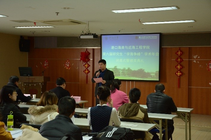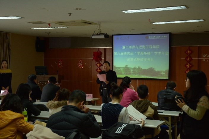 11月29日下午,港口海岸与近海工程学院第六届研究生“学海争峰”学术年会在严恺馆702顺利闭幕。校党委研工部李枫部长、我院党委胡忠华书记、张继生副院长、陈永平教授、郝嘉凌老师、林凡老师、校研究生科协主席朱晓晓出席了此次闭幕式。