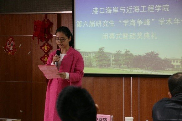 11月29日下午,港口海岸与近海工程学院第六届研究生“学海争峰”学术年会在严恺馆702顺利闭幕。校党委研工部李枫部长、我院党委胡忠华书记、张继生副院长、陈永平教授、郝嘉凌老师、林凡老师、校研究生科协主席朱晓晓出席了此次闭幕式。