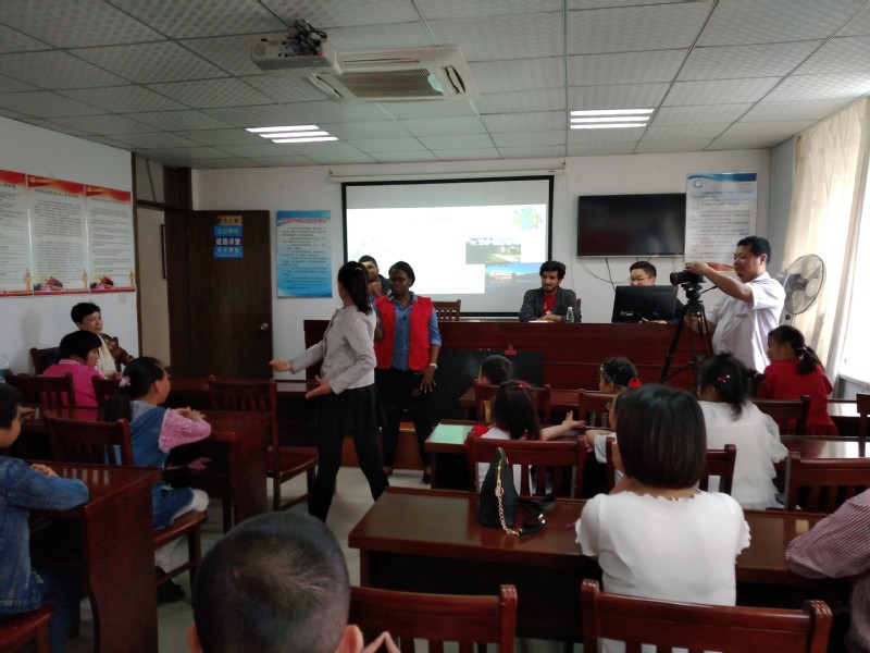 2018年5月5日下午,来自港航院青协的志愿者同本院中港班的两位留学生,以及来自土木院的一名外籍研究生一道,来到了秣陵街道双金社区四点半课堂,为公益课堂的孩子们奉献了一场知识与互动结合的精彩活动。活动有幸受到江宁电视台的采访报道,产生了良好的社会效益。