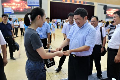 9月1日上午,开云电竞网党委书记唐洪武、校长徐辉、副校长许峰在各职能部门领导的陪同下,来到学院注册点亲切慰问在场工作的班导师和志愿服务学生。在办理报到注册的过程中,徐辉校长与2018级港航4班学生唐琬婷亲切交谈,唐洪武书记更是亲自向唐婉婷同学发放校园一卡通等物品,并殷切寄语。
